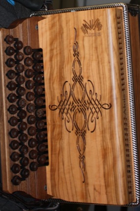 | Am frühen Samstagmorgen machten sich Alois, Bertl und Bernhard auf den Weg zur Firma Öllerer nach Freilassing/Bayern. Der Grund der langen Reise war die Harmonika, die Alois vor einigen Monaten in Auftrag gegeben hatte. Es handelt sich dabei um ein "Modell Solist", das Instrument wurde genau nach den speziellen Wünschen von Alois angefertigt. Er entschied sich für eine Harmonika aus Olivenholz in der Stimmung B-Es-As-Des, zusätzlich zu dem serienmäßigen Metallverdeck wählte er ein Holzverdeck aus. Die Firma Öllerer legt besonderes Augenmerk darauf, Klang, Design und Ausstattung harmonisch zu einem Instrument zu vereinen, was bei der neuen Harmonika von Alois ausgesprochen gut gelungen ist. Lieber Alois, wir wünschen dir viel Spass und Freude mit deiner neuen "Öllerer Olive"! |
