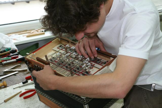 Mit Sehnsucht hat Bertl Eppensteiner aus Gresten auf seine neue Harmonika gewartet. Am Donnerstag war es dann soweit. Begleitet von Fischer Alois und mir ging die Reise nach Freilassing. Harmonikas gibt es viele, aber diese ist ein Unikat der besonderen Art. Es wurde dabei das Holz aus dem eigenen Garten der "Schleichervilla" verwendet. Eine jahrelang gelagerte Weihrauchzedern mit einem eigenen Farbton und einer besonders schönen Maserung. Zum besonderen Klang tragen Holz und auch die Tonkammertechnik der Firma Öllerer bei.